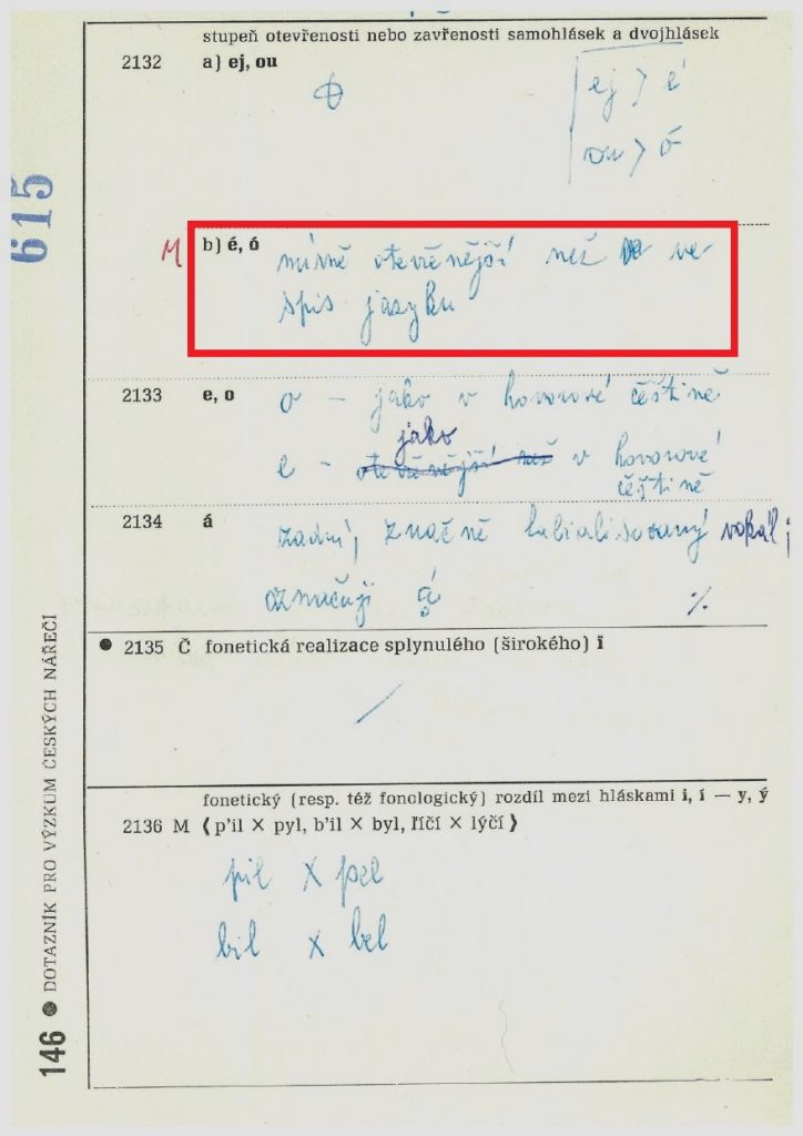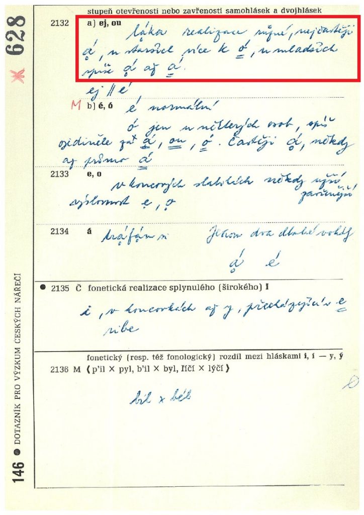 Dotazník pro výzkum českých nářečí. [Soubor dotazníků vyplněných v rámci výzkumu pro Český jazykový atlas, deponovaný v archivu dialektologického oddělení ÚJČ AV ČR v Brně.]