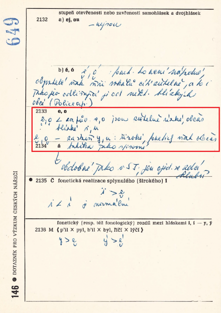 Dotazník pro výzkum českých nářečí. [Soubor dotazníků vyplněných v rámci výzkumu pro Český jazykový atlas, deponovaný v archivu dialektologického oddělení ÚJČ AV ČR v Brně.]